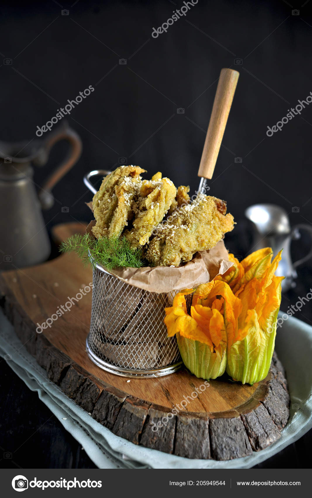 Traditional Italian Fried Zucchini Blossoms Courgette