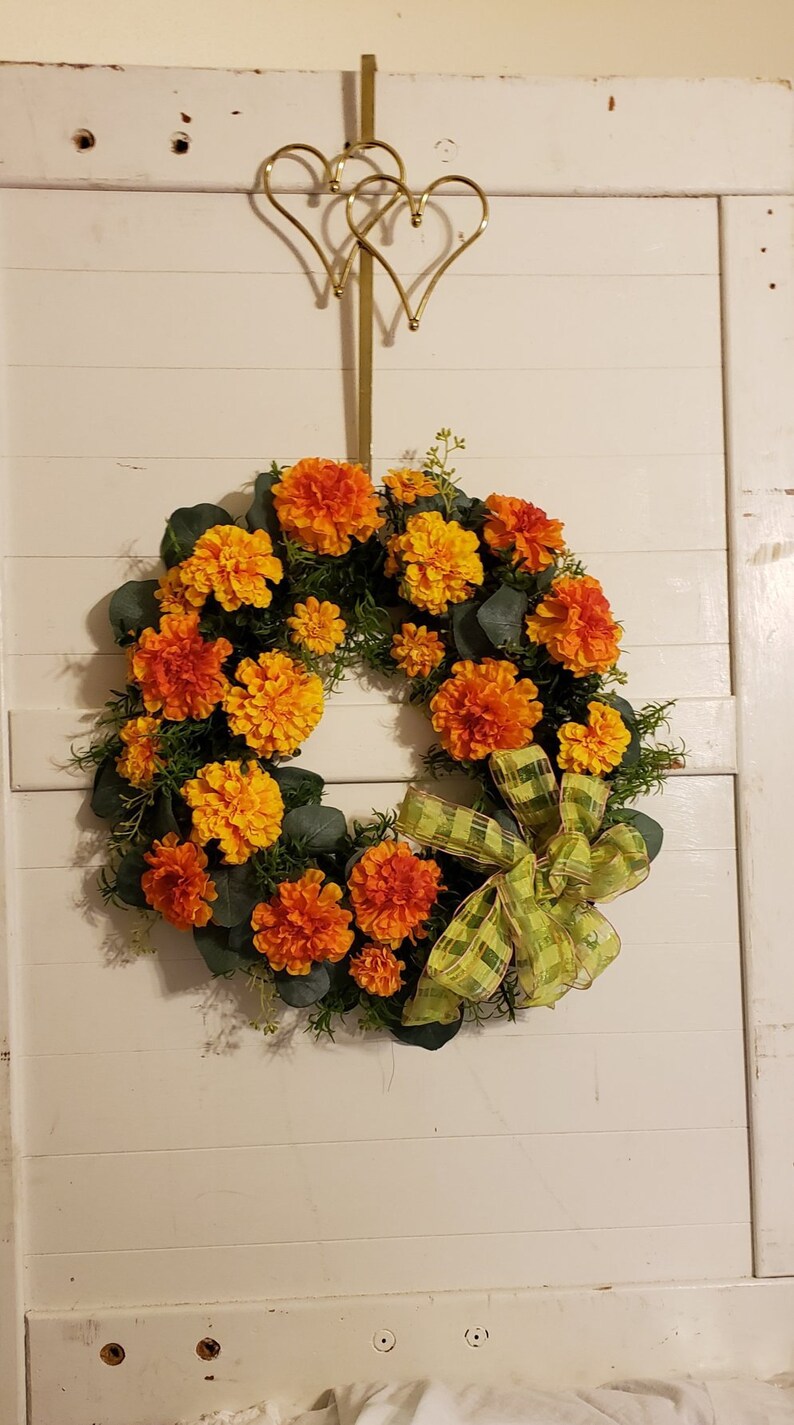Marigold Wreath Faux Artificial Summer Spring And Fall Door Decoration